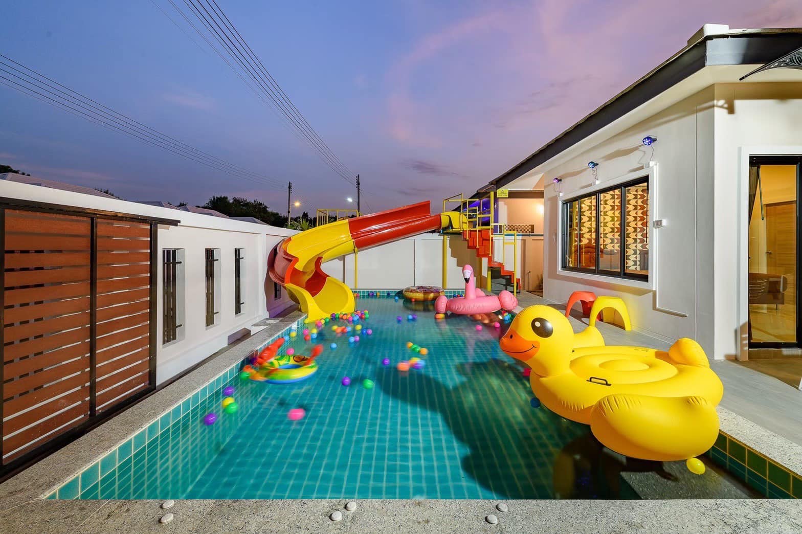 - สระว่ายน้ำส่วนตัว พร้อมห่วงยางแฟนซี + ลูกบอลในสระ