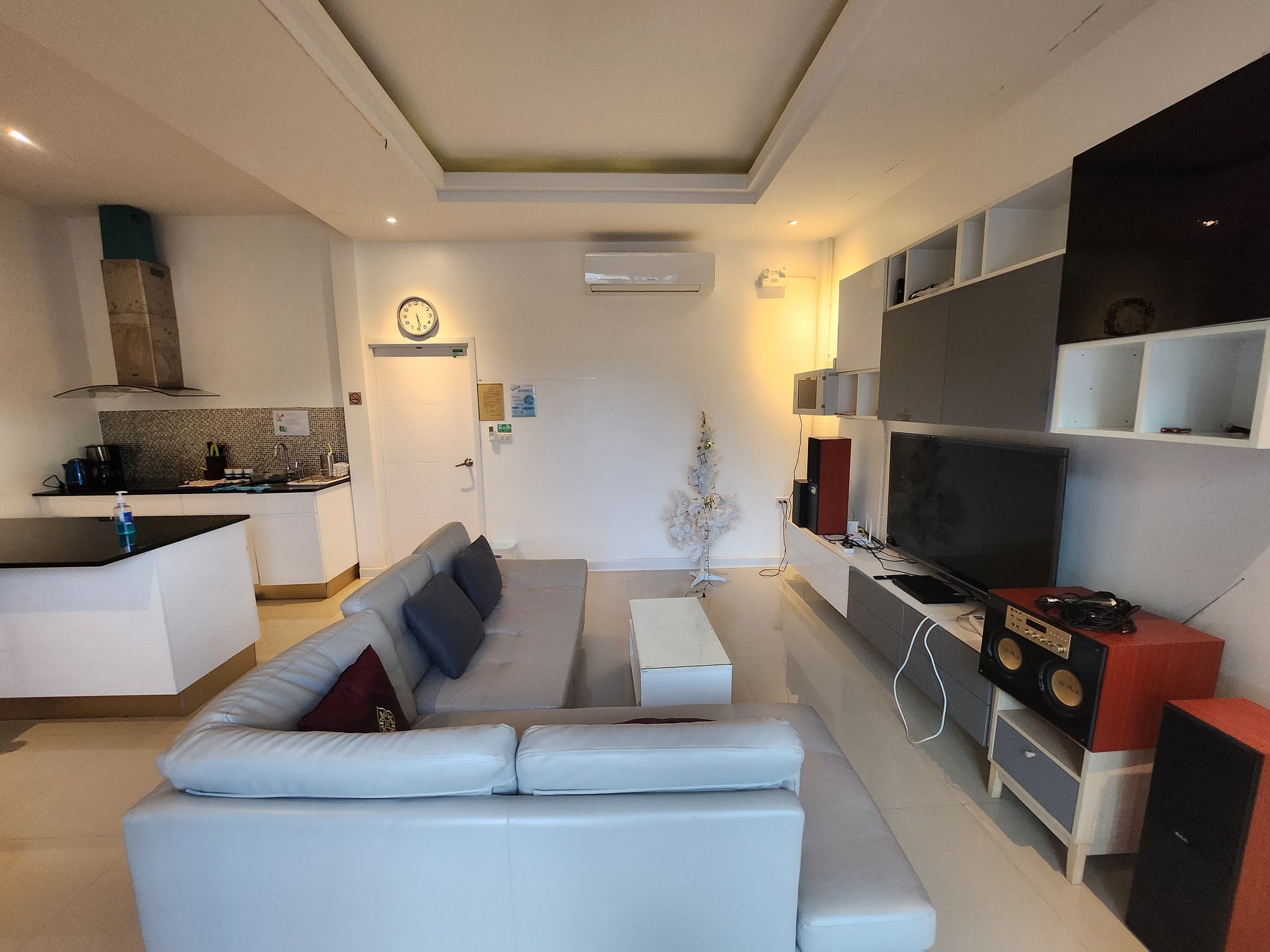 ภายในบ้านพักของ จิ รา พูล วิลล่า หัวหิน มีสิ่งอำนวยความสะดวกครบครัน ไม่ว่าจะเป็นเครื่องปรับอากาศทุกห้อง ทีวีจอแบนดิจิตอล โซฟานั่งสบาย รวมถึงอุปกรณ์เครื่องครัวครบชุด ทั้งตู้เย็น ไมโครเวฟ กาต้มน้ำไฟฟ้า เครื่องปิ้งขนมปัง หม้อหุงข้าว