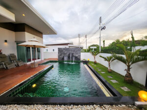 จุดเด่นที่หลายคนชอบของ จิ รา พูล วิลล่า หัวหิน คือสระว่ายน้ำกลางแจ้งส่วนตัว ที่มาพร้อมระบบจากุซซี่ จะลงเล่นน้ำคลายร้อนช่วงกลางวัน หรือแช่น้ำชิลๆ ตอนเย็นก็ฟินไม่แพ้กัน