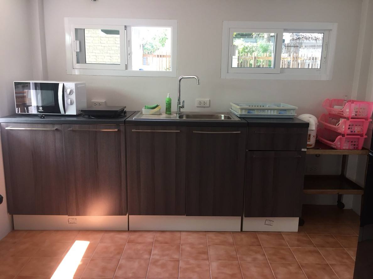 สายทำอาหารหรืออยากจัดมื้อพิเศษเล็กๆ ที่นี่มีห้องครัวให้ใช้งานฟรี พร้อมอุปกรณ์ครบครัน ทั้งไมโครเวฟ เครื่องปิ้งขนมปัง เตาไฟฟ้า หม้อหุงข้าว จาน ชาม ช้อน แก้ว มีด เขียง ครก และกระติกน้ำร้อน นอกจากนี้ยังมีเตาปิ้งย่างแบบถ่าน เหมาะกับการปิ้งย่างชิลๆ ตอนเย็นๆ (ลูกค้าเตรียมถ่านและตะแกรงมาเองนะคะ) บอกเลยว่าบรรยากาศดีมากค่ะ