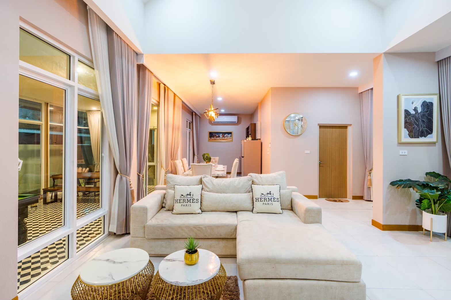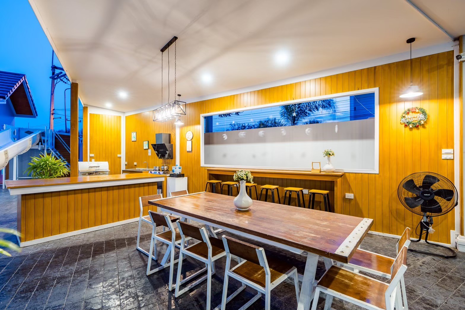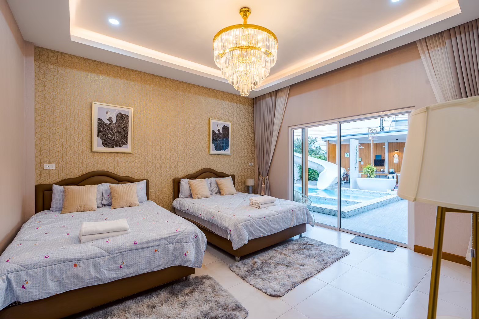 ไฮไลต์ของที่นี่คือสระว่ายน้ำส่วนตัว เล่นน้ำได้ทั้งวันแบบไม่ต้องแชร์กับใคร พร้อมโต๊ะสนุ๊กมาตรฐาน และคาราโอเกะเสียงจัดเต็ม เพิ่มความมันส์ให้ปาร์ตี้ยาวๆ ได้แบบไม่มีสะดุด แถมยังมีโซฟาเบดปรับนอนได้ และพรอพถ่ายรูปเก๋ๆ เอาใจสายคอนเทนต์อีกด้วยค่ะ
