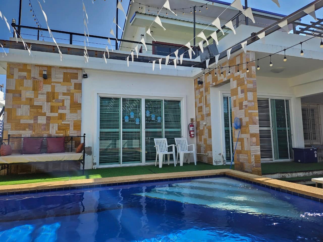 บ้านรองรับผู้เข้าพักเริ่มต้น 14 คน และสามารถเสริมได้อีกสูงสุด 6 คน มี 6 ห้องนอน 6 ห้องน้ำ พร้อมคาราโอเกะ โต๊ะพูลขนาด 7 ฟุต สระว่ายน้ำส่วนตัวระบบคลอรีน และครัวพร้อมอุปกรณ์ครบ เหมาะกับสายปาร์ตี้ ปิ้งย่างบาบีคิว และนั่งชิลยาวๆ ได้ทั้งวัน แม้จะไม่มีอาหารเช้า แต่เรื่องทำเลและบรรยากาศ บอกเลยว่าคุ้มมากค่ะ