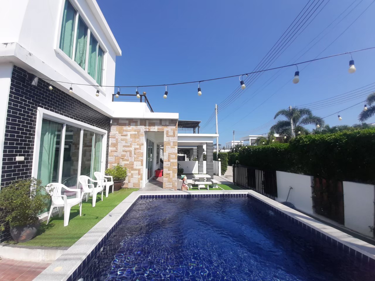 บ้านขนาด 3 ห้องนอน 4 ห้องน้ำ รองรับได้ 10–12 คน มีทั้งคาราโอเกะ โต๊ะพูล สระว่ายน้ำส่วนตัว และครัวครบครัน ใครอยากได้ฟีลปาร์ตี้สนุกๆ แต่ยังใกล้ทะเล บรรยากาศชิลๆ หลังนี้คือเลือกได้อย่างสบายใจค่ะ