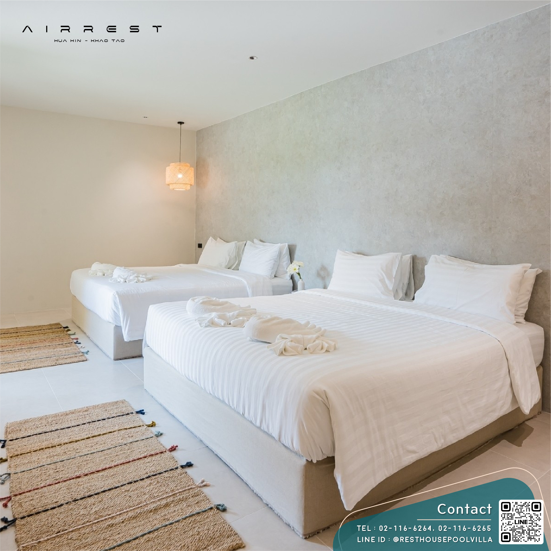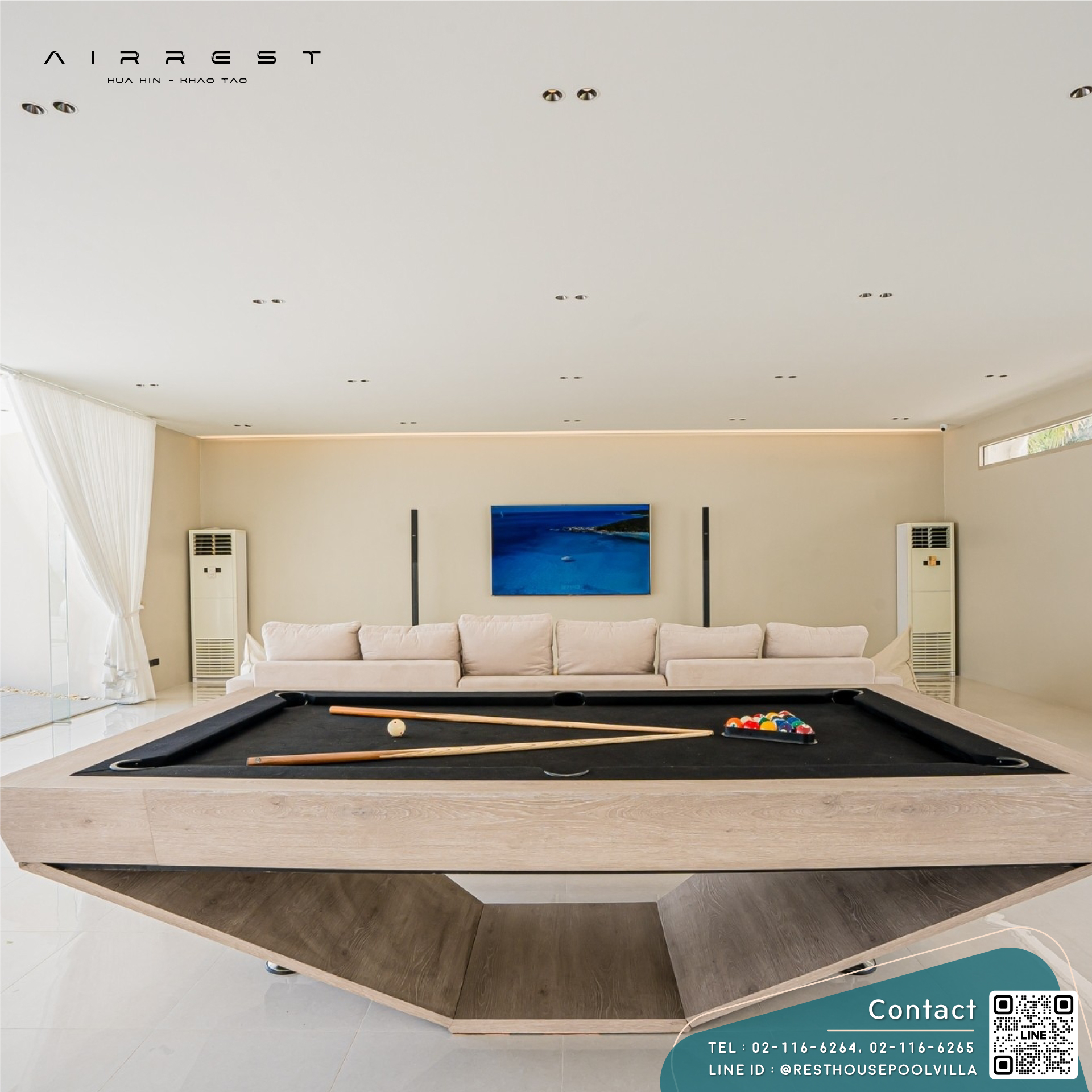 Airrest Beachfront Villa เป็นอีกหนึ่งตัวเลือกของ พูลวิลล่าหัวหิน 50คน ที่ได้ฟีลพักผ่อนแบบรีสอร์ทส่วนตัว บ้านมี 8 ห้องนอน 9 ห้องน้ำ พร้อมสระว่ายน้ำส่วนตัวติดทะเล บรรยากาศดีตั้งแต่เช้าจรดเย็น