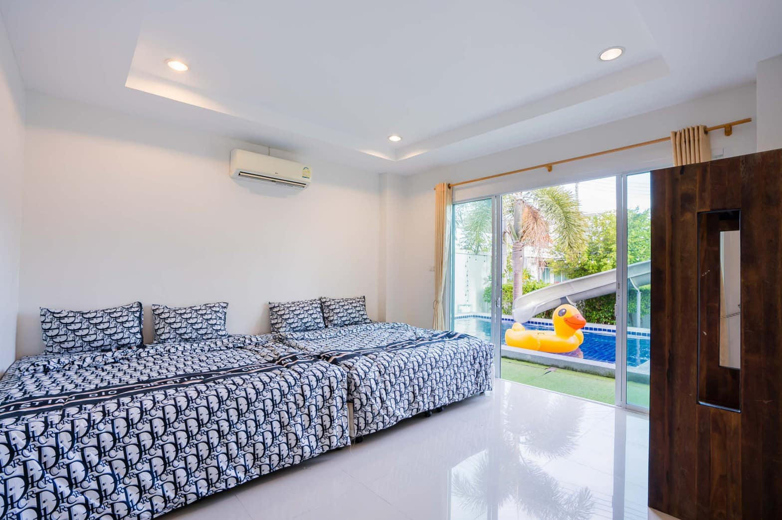 ไฮไลต์คือสไลเดอร์สีดำสุดเท่ ความยาวถึง 10 เมตร เล่นสนุกได้ทั้งเด็กและผู้ใหญ่ พร้อมสระว่ายน้ำส่วนตัว โต๊ะพูล และคาราโอเกะฟรี เพิ่มสีสันให้วันพักผ่อนได้แบบจัดเต็ม ภายในมีครัวพร้อมอุปกรณ์ครบ เตาปิ้งย่าง แถมยังพาน้องหมาพันธุ์เล็กเข้าพักได้อีกด้วย โดยรวมแล้ว Onyx Stay ตอบโจทย์คนที่อยากได้ พูล วิลล่า หัวหิน ครอบครัว ฟีลสนุก เหมาะมากสำหรับทริปพักผ่อนที่อยากให้ทุกคนมีรอยยิ้มกลับบ้านค่ะ
