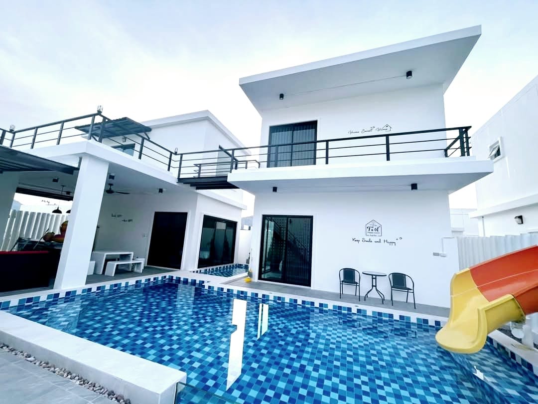 บ้านพักพูลวิลล่าที่เหมาะกับสายครอบครัวใหญ่และกลุ่มเพื่อน T&A Happy Home Huahin รองรับได้ถึง 20 คน มี 4 ห้องนอน 5 ห้องน้ำ พร้อมสระว่ายน้ำระบบคลอรีน และยังมี สระเด็กเล็ก เอาใจบ้านที่มีเด็กๆ