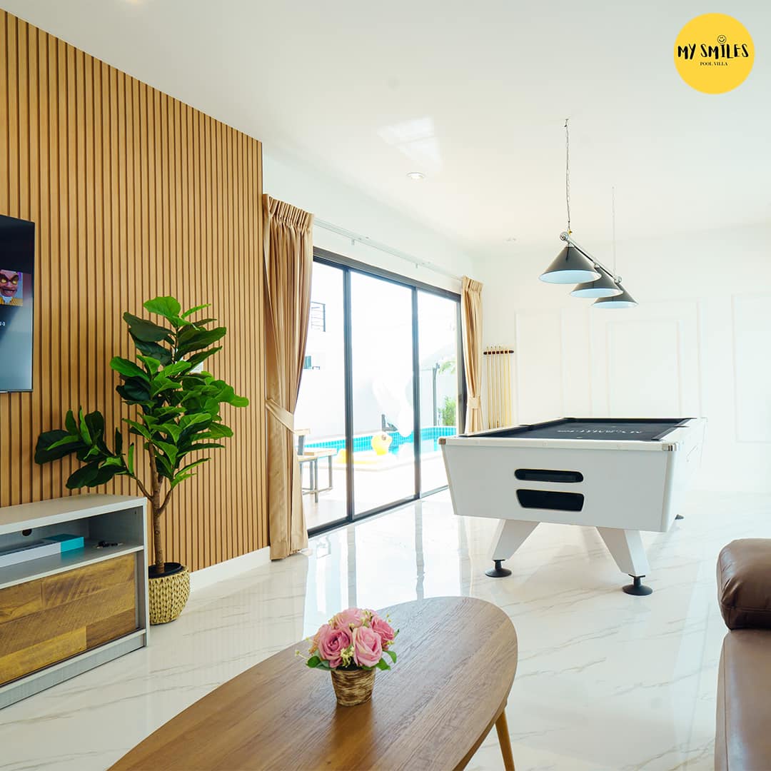 จุดเด่นที่หลายคนชอบคือ สระว่ายน้ำส่วนตัวระบบคลอรีนพร้อมสไลด์เดอร์ เล่นน้ำกันได้แบบยาวๆ เพิ่มสีสันให้ทริปไม่น่าเบื่อ แถมยังมี โต๊ะพูล สำหรับสายกิจกรรม ช่วยสร้างบรรยากาศให้บ้านคึกคัก สนุกได้ทั้งกลางวันและกลางคืน ใครอยากได้ หัวหิน พูลวิลล่า ที่เน้นความเฮฮาและความสะดวกสบาย บอกเลยว่าหลังนี้ตอบโจทย์มากค่ะ